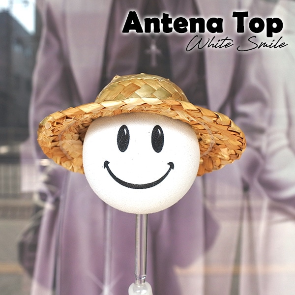 アンテナトップ 麦わらスマイル ホワイト アンテナトッパー アンテナボール 麦わら 帽子 SMILE ニコちゃん アンテナ アメリカ 雑貨 インテリア 自動車 自転車 カー用品 アメリカ 雑貨