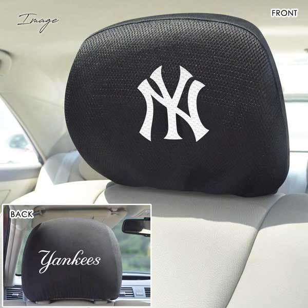ヘッドレストカバー ヤンキース グッズ 2個 ワンセット ペア 刺繍 カーアクセサリー 車内 インテリア NY YANKEES MLB ニューヨークヤンキース ブラック 黒 メッシュ