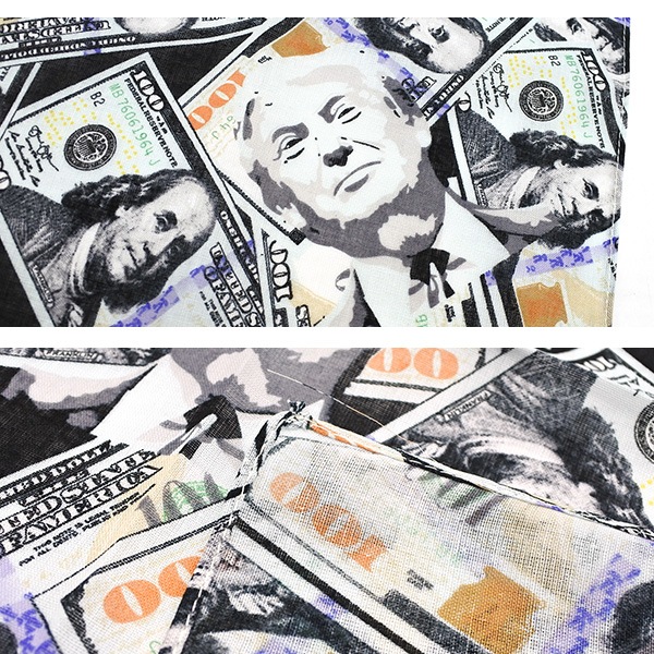 トランプ大統領と100ドル札デザインのおしゃれなバンダナです。 他ではなかなか見つからない個性的なバンダナを ファッションはもちろん、お弁当包みなどいろいろな用途に使ってください♪ ■サイズ 縦:約55cm 横:約55cm ■素材 綿 100% ※この商品は輸入品の為、目立たない程度の色むら・糸のほつれや縫製など縫い目が荒い部分がある場合がございますが、予め何卒ご了承ください。 ※ネコポス便OK アイカム aicamu アメリカ雑貨 メキシコ雑貨 マリア雑貨 ミニカー ダイキャスト アメ車 ハーレー チョロスタイル チカーノ チカーノスタイル チカーノファッション チカーナ ローライダー lowrider impala インパラ インパラパーツ カーアクセサリー アメリカ直輸入 輸入雑貨 ウエストコースト hiphop ヒップホップ ストリート FELIX m&m ラットフィンク ロードランナー MEXICO LA ロサンゼルス アメリカ 西海岸 ワイルドスピード ワイスピ WILD SPEED