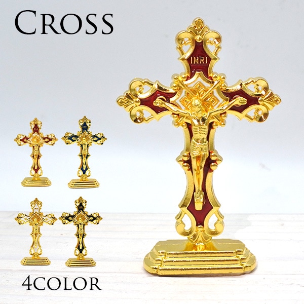 ジーザスクロス 十字架 オブジェ 約7.8cm 全4色 レッド ブルー ホワイト ブラック オーナメント インテリア 置物 置き物 キリスト像 クロス おしゃれ 飾り 装飾 アメリカ 雑貨