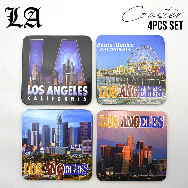 ロサンゼルス コースター 4枚セット 角型 コルクコースター LOS ANGELES LA CALIFORNIA カリフォルニア Santa Monica サンタモニカ おしゃれ アメリカ 雑貨
