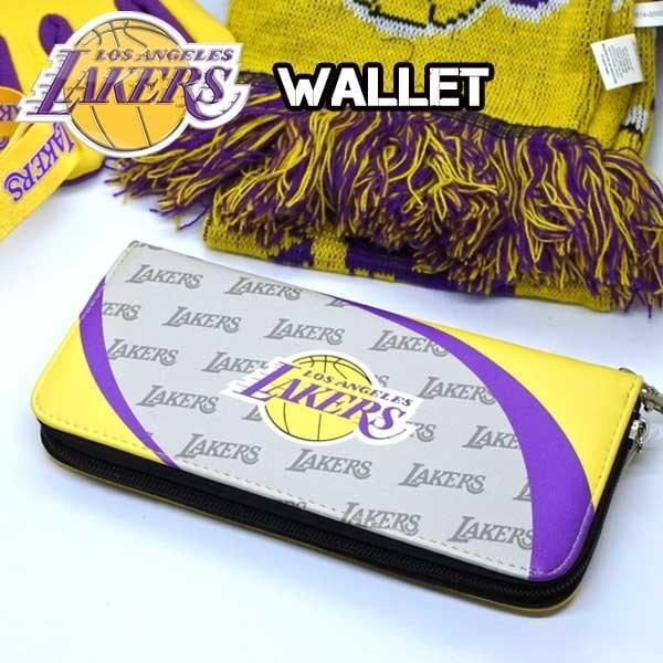 ロサンゼルス レイカーズ ラウンドファスナー 財布 イエロー グレー NBA LAKERS グッズ メンズ 長財布 ウォレット アメリカ 雑貨