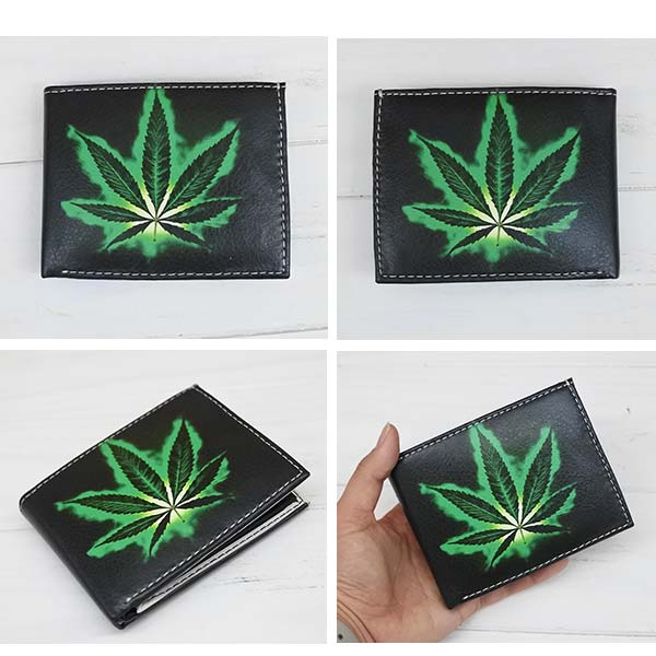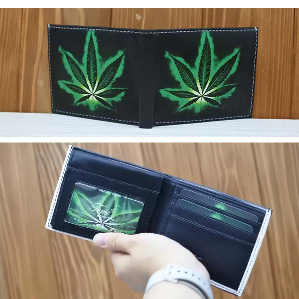 2つ折り財布 財布 フェイクレザー ヘンプ HEMP ウォレット コンパクト カード入れ 合皮素材 メンズ レディース オシャレ マリファナ ストリート ブラック